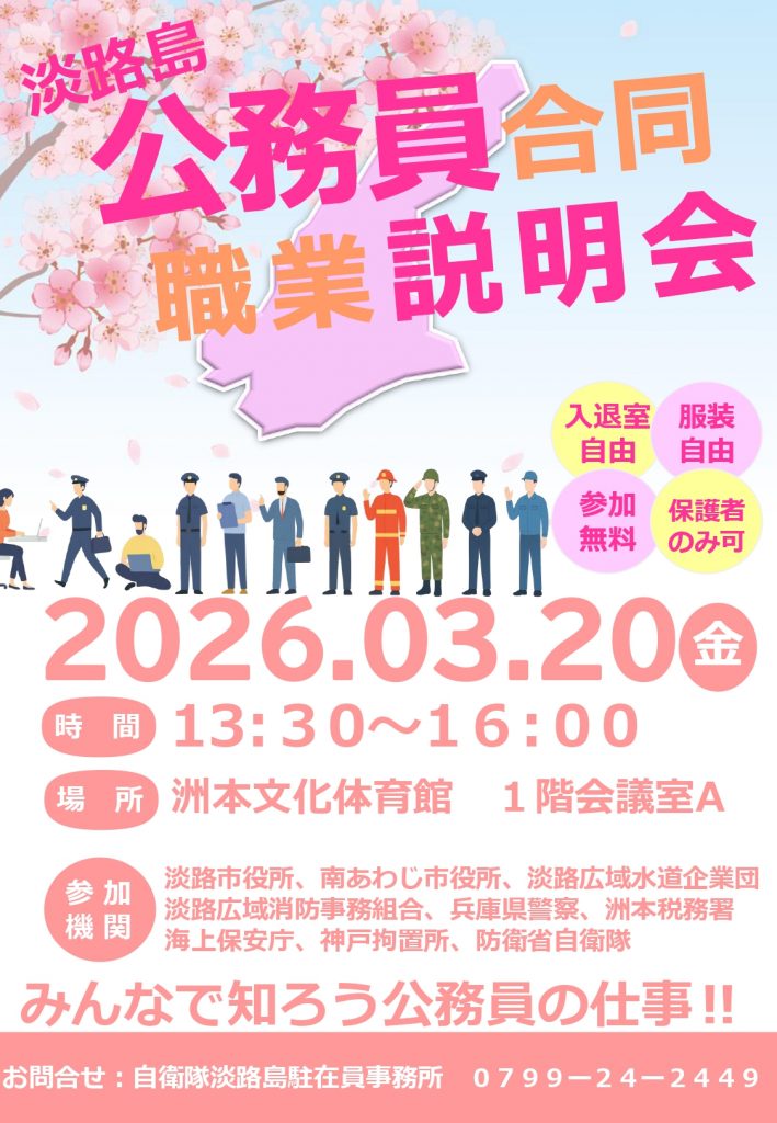 令和8年3月20日(金・祝)、洲本市文化体育館にて開催される公務員合同職業説明会に参加します!