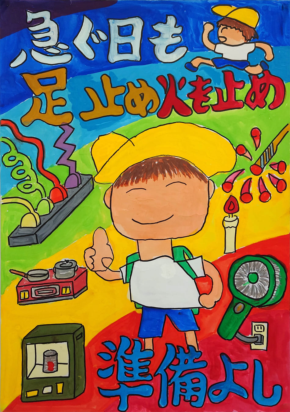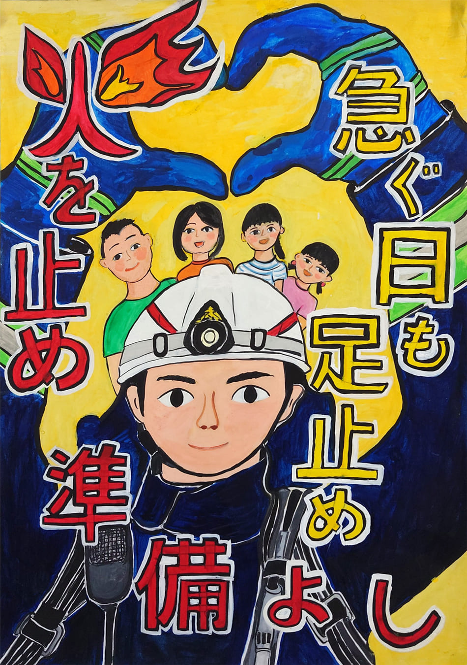 入賞作品 最優秀賞(中学生の部) 洲本市立五色中学校2年 千川 遥真 最優秀賞(小学生の部) 南あわじ市立神代小学校5年 林 総一郎 消防長賞 洲本市立五色中学校1年 坂本 瑞稀 淡路消防保安協会長賞 洲本市立安乎小学校6年 神代 陽香